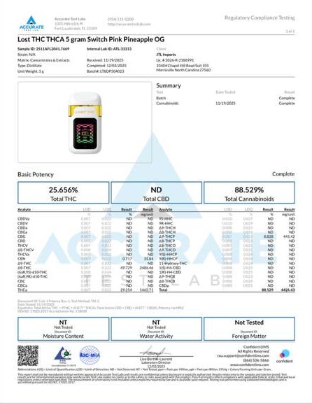 LOST THC: SWITCH THCA DISPOSABLE - 5G